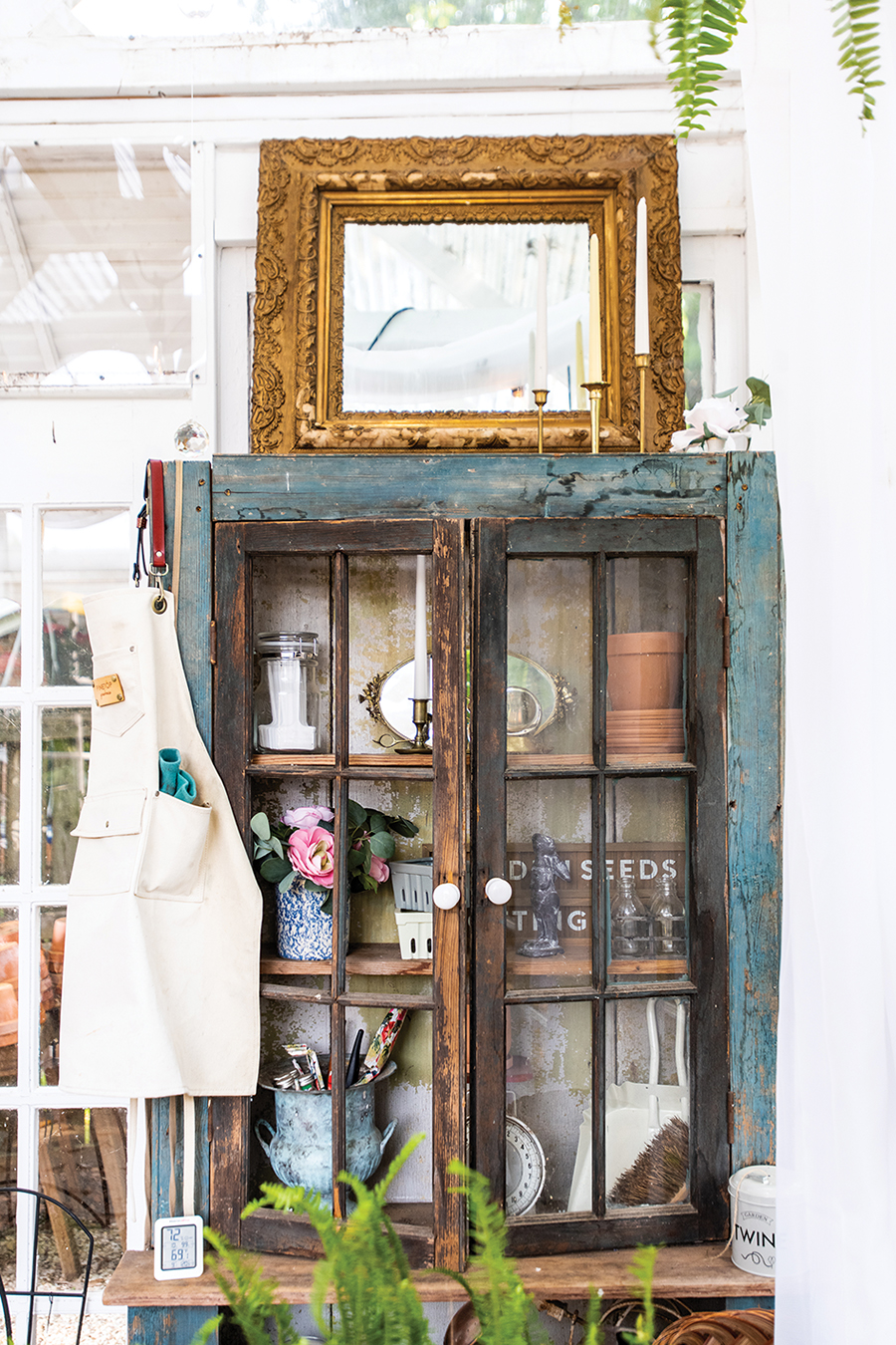 For now, the greenhouse nurtures Jamie’s creative spirit. She loves “the thrill of the hunt” and shops local thrift stores, often scooping up vintage finds that inspire a complete overhaul of the interior design.