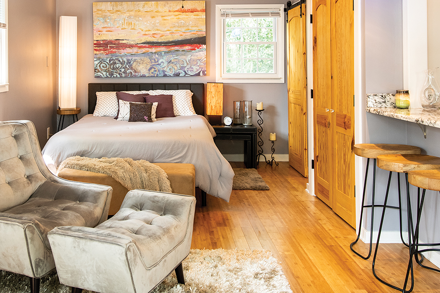 With the interior work just about complete, the retreat opened its doors to its first guest, a girlfriend who was moving back to the continental U.S. from Hawaii. “She stayed probably six months until she found her own place, but it was the perfect little space for her.” And did they meet on the backyard deck for drinks during that period? “Every day!”