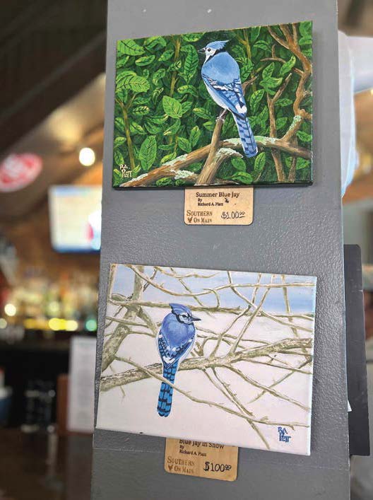 Arriving at lunchtime finds us ducking into a scrumptious farm-to-table feast at Southern on Main, a hometown favorite that proudly displays art for sale. Vibrant bluejay canvases pop against the wood-beamed walls.