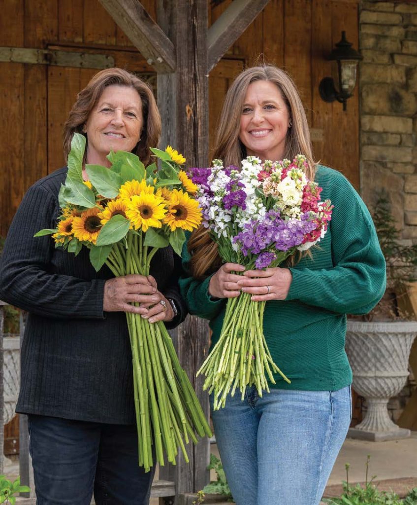 Back in their own yard, they’re working their own magic. Soon, the poppies and Larkspur along the fence — her cutting garden — will be replaced by new flowers. Last year, she planted heirloom zinnia seeds “and they actually worked!” She was able to supplement purchased stems with blooms from her garden.